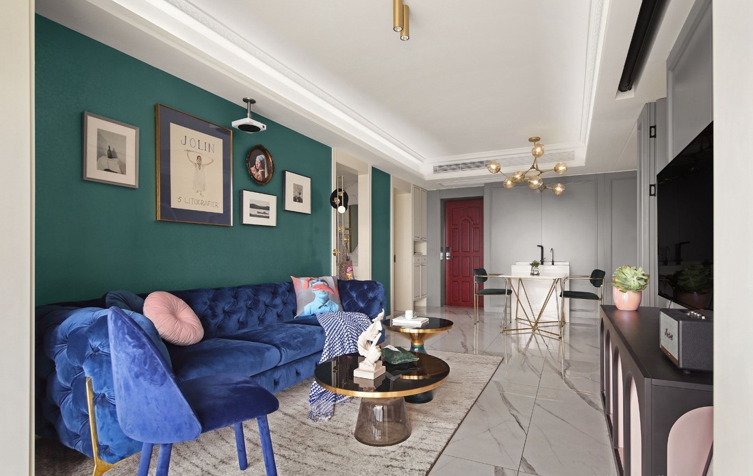 软装的搭配是整个空间的灵魂,软装设计师用不同程度的蓝和金色点缀出低调的奢华。