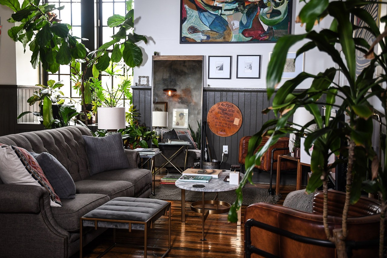 客厅地面铺了木地板,同时摆放了很多绿植,绿植是可以起到很好的调节氛围作用。