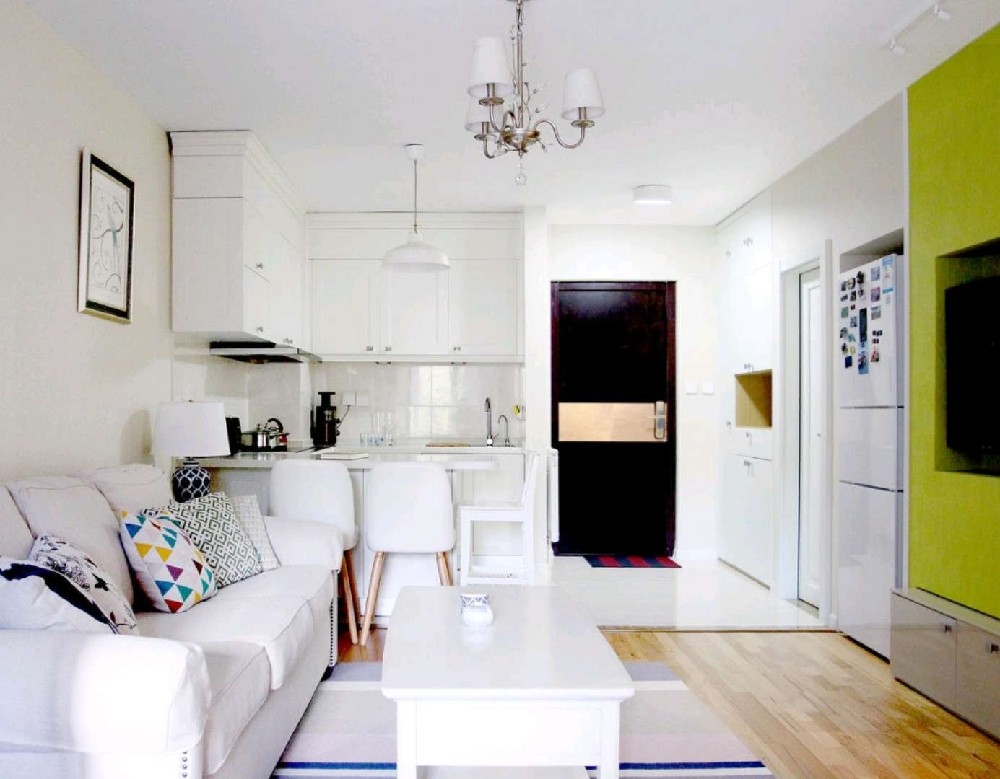 原本是一居室的小户型,厨房小,客厅空间占用面积较大,避免日后分化出来的卧室影响之前客厅整体的采光,