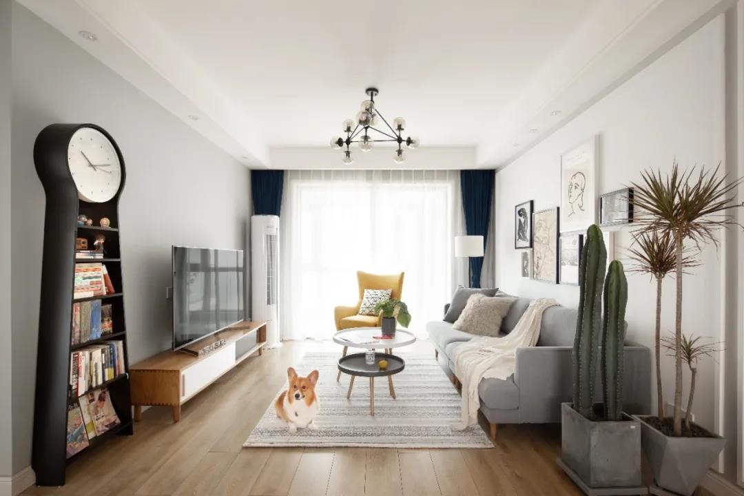 本案例是104㎡北欧风格装修,两位年轻屋主,相恋多年,终成眷属,他们的小家还多了一位重要的成员,一只敲可爱的柯基---茱迪,设计师通过原木色、灰色、白色的巧妙搭配,创造出一个温暖的充满爱的小窝。