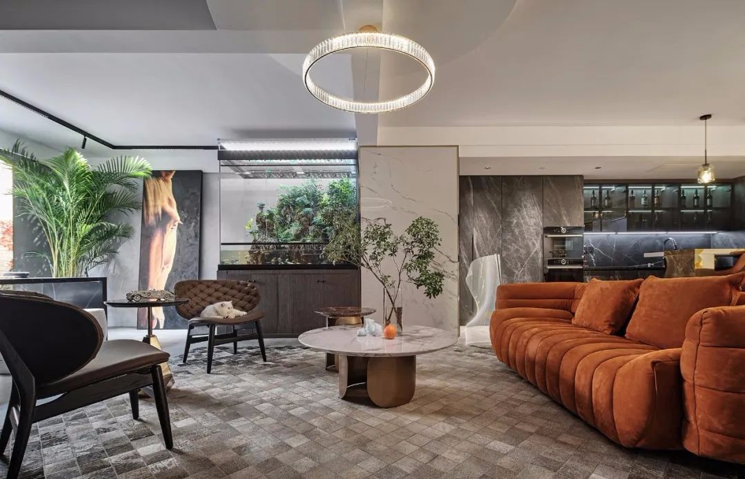 门而入,负一楼目之所及的景象催发归家的舒缓1.情绪:质感柔软的沙发,潜沉温暾的色彩,简洁精致的软设,皆是美好而快然的感官体验