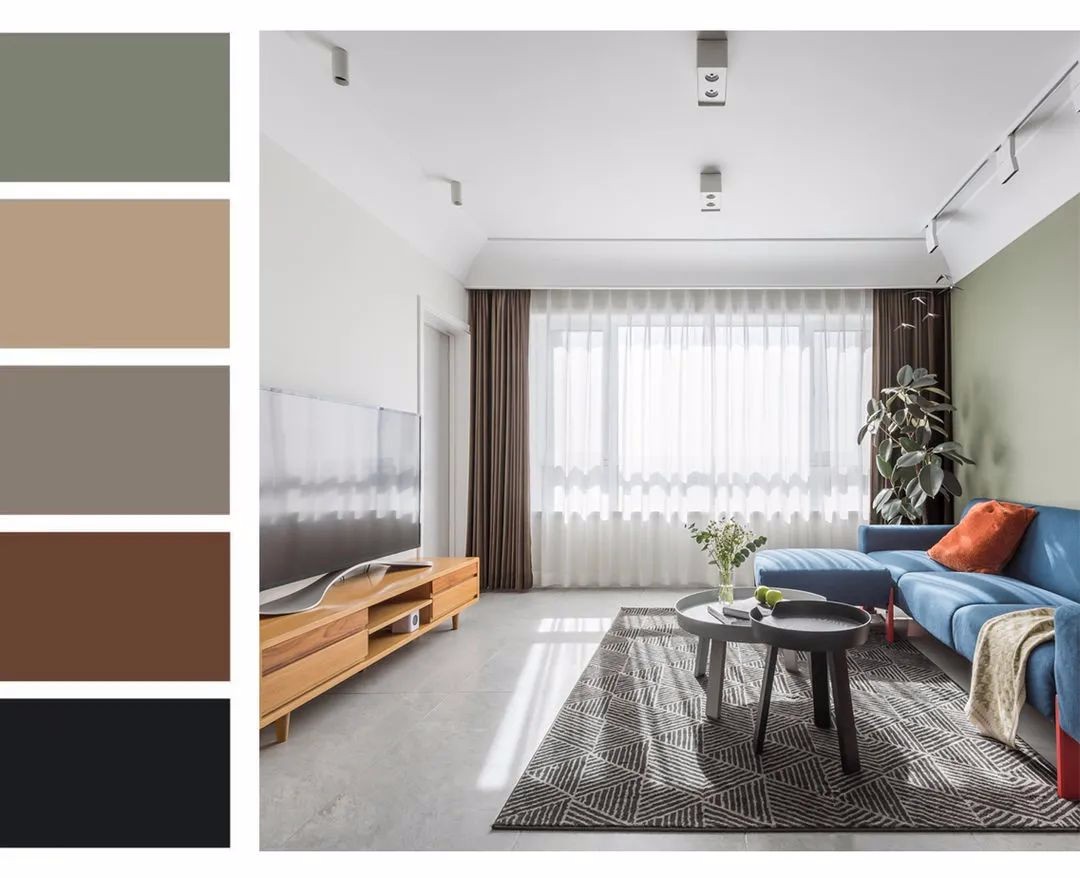 舒服的莫兰迪配色,老家具与撞色沙发相得益彰