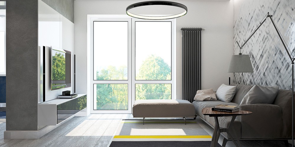 客厅主色调是黑白加木色,局部深灰,灯具配饰以工业风为主。线条简约分明,木色元素让空间更柔和。因为有中央空调和新风系统,所以周边都有吊顶。并且采光效果非常的好。