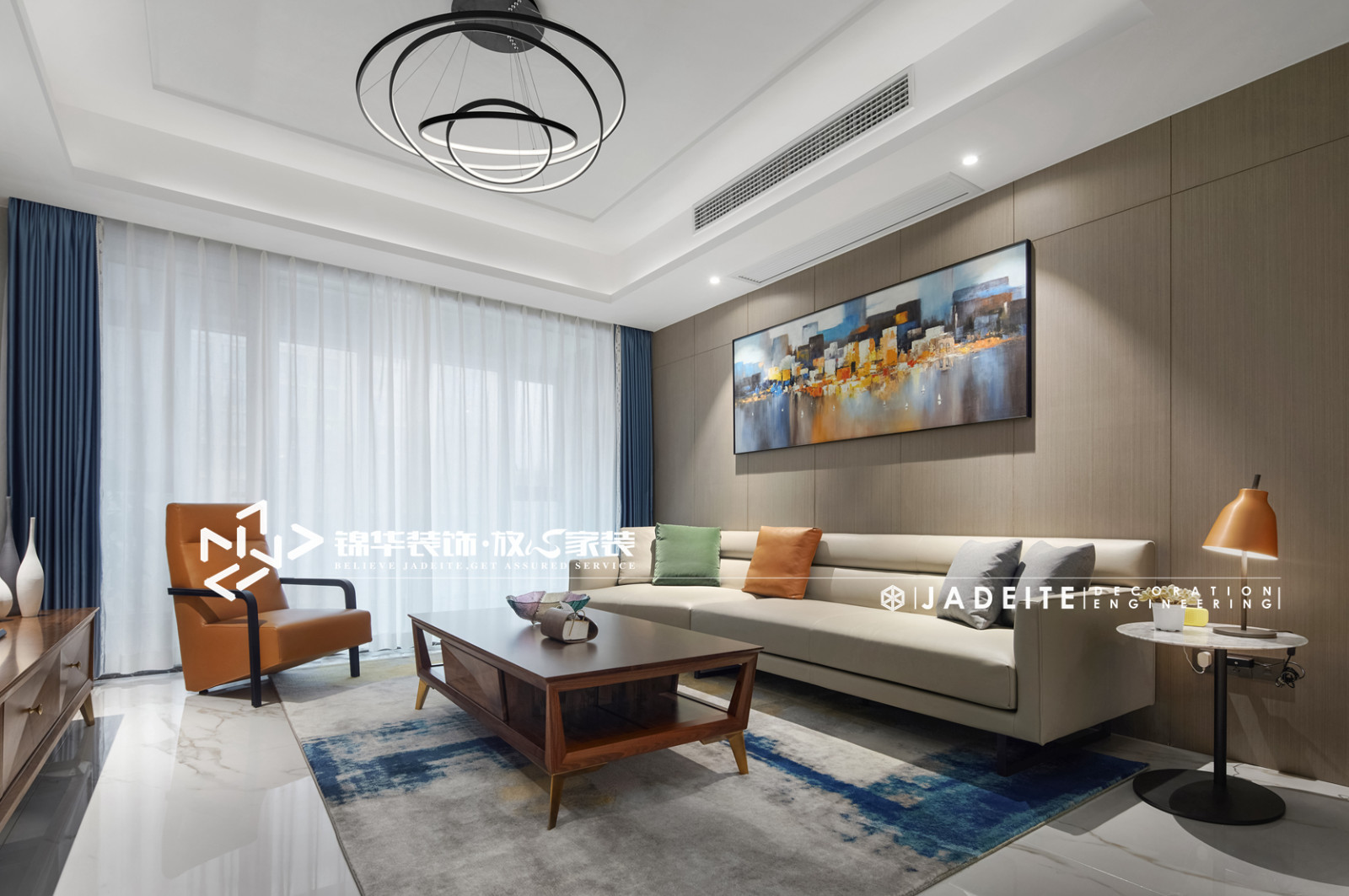 橙色的单品和现代风壁画给空间注入惊喜的视觉变化,勾勒出舒心自在的家居时光。