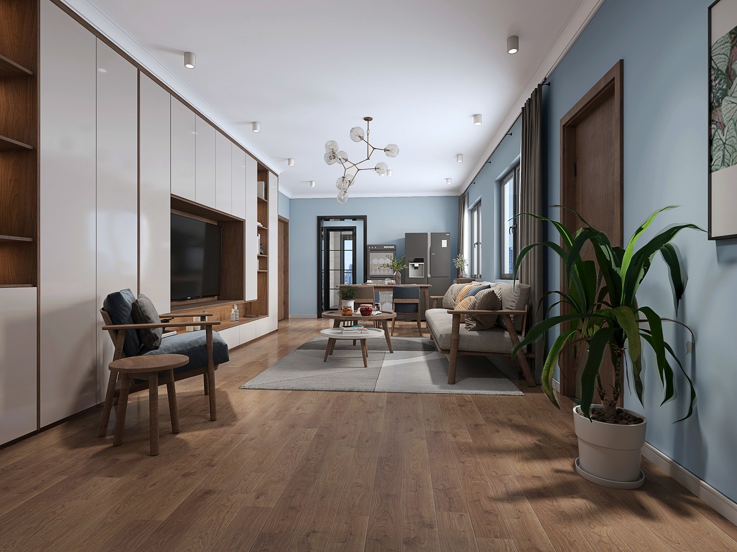设计考虑独处空间的舒适,以低饱和度的灰蓝色调,呈现主人高雅的气度