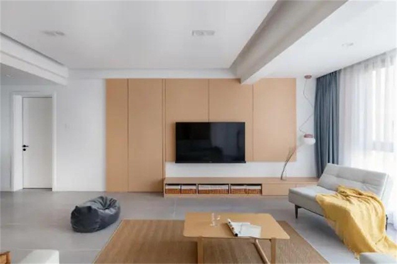 玩游戏的两人也想要一个健身空间,于是将休闲阳台纳入客厅,刚好放跑步机。阳台一侧安排了到顶柜体,收纳客厅的众多杂物,保持空间整洁清爽。