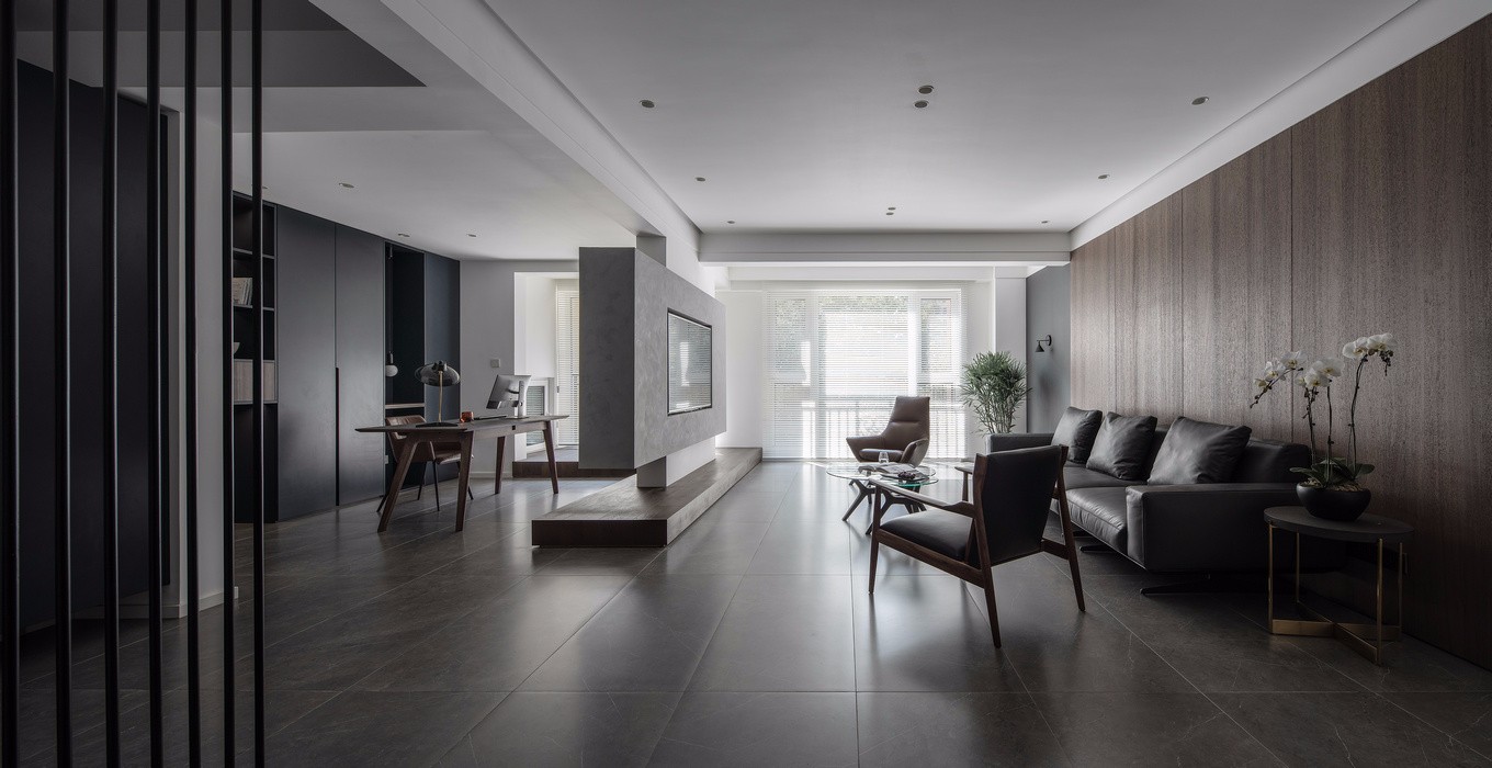 客厅运用当前流行得到黑白灰,简单,实用,空间感强。