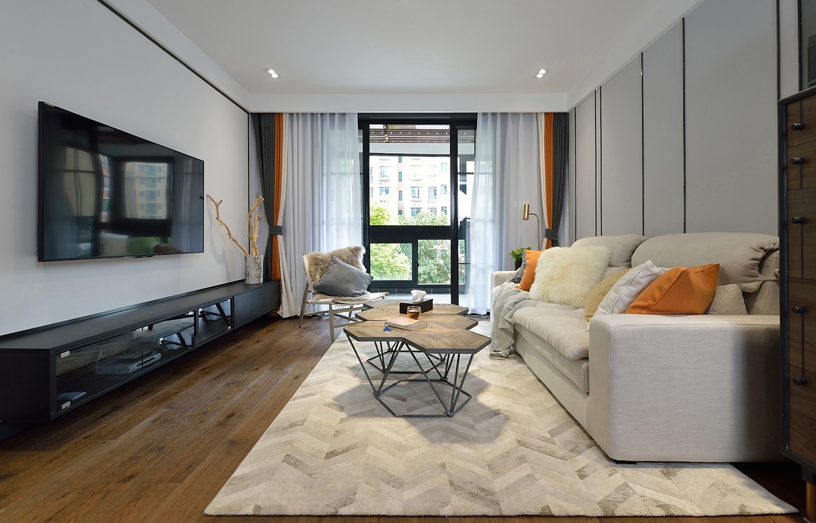 客厅摒弃了传统的吊灯模式,只选用筒灯,柔和的光线让空间更富质感。
