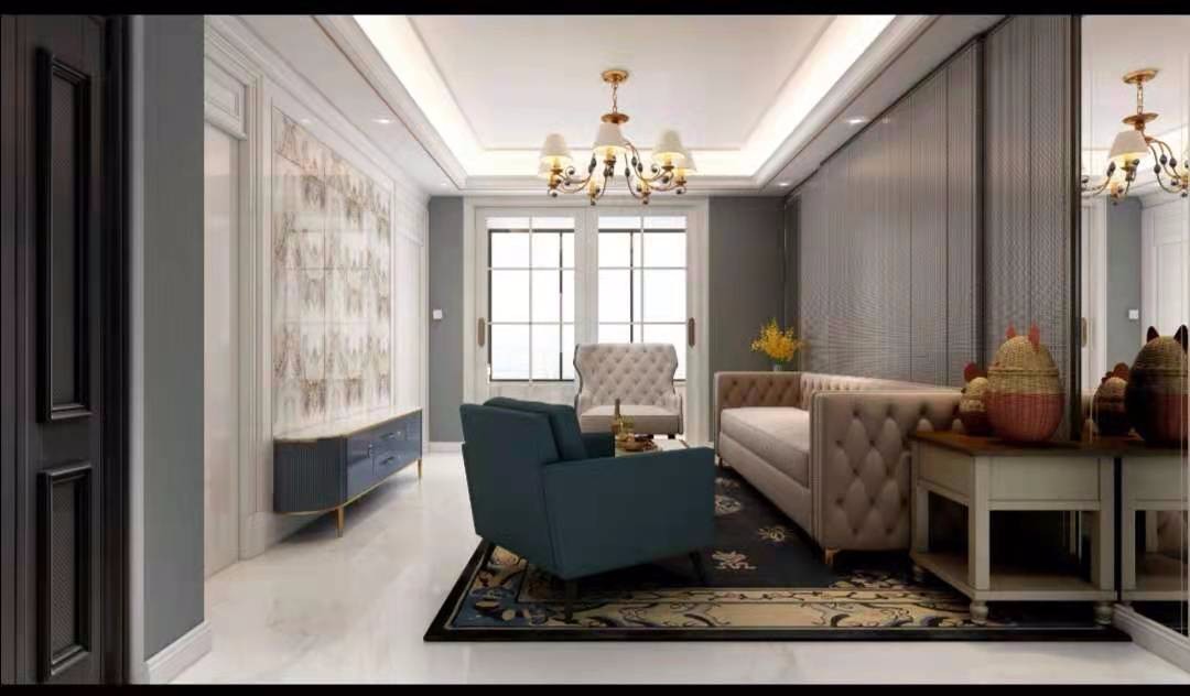 现代简欧结合木饰面,地面地毯衬托