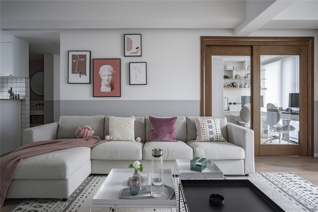 客厅以雅致的配色、时尚的饰品装饰,营造舒适的温馨感。