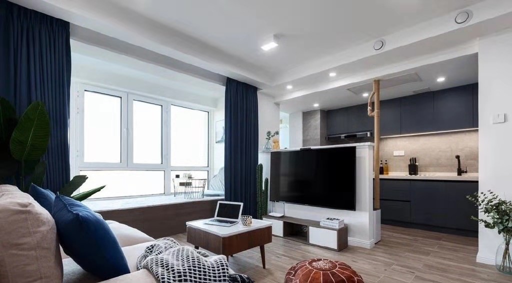 整体以简约为主 墙体用蓝色点缀