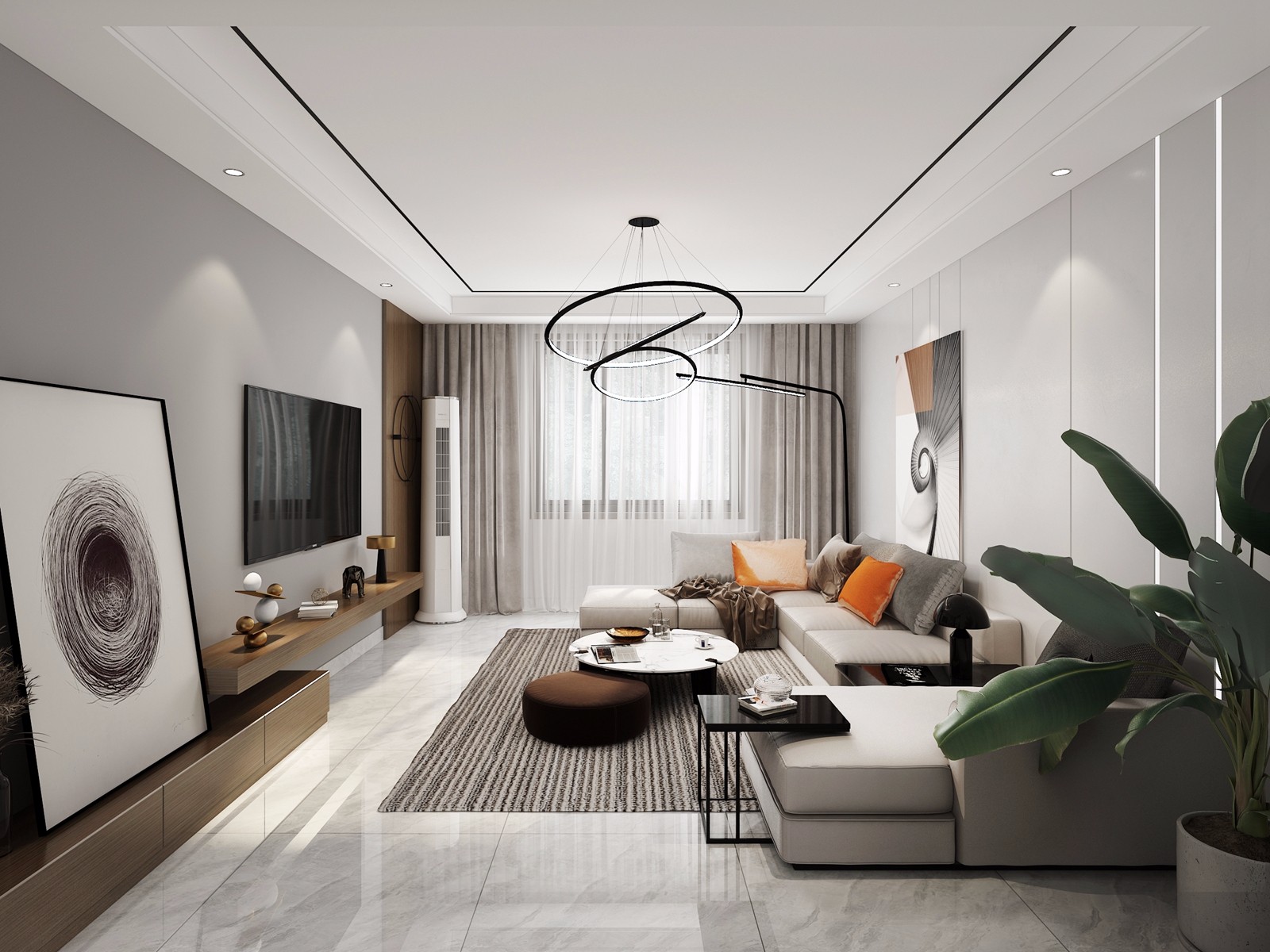 客厅:业主喜欢简洁大气干净利落,不喜欢繁琐的造型,打扫卫生也会麻烦,因此不论从风格上还是造型上客户都遵从了简约风格的特点。