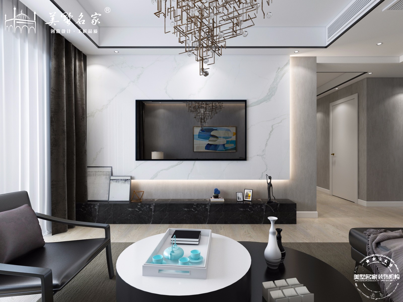 整体空间干净、明亮,没有多余的细节,设计师将每一寸角落都***地利用起来,以白色大理石为电视机背景墙,完美契合。