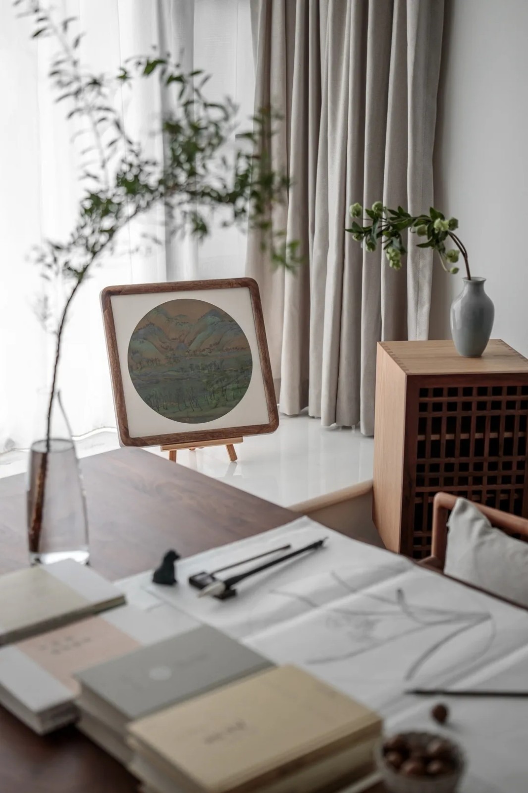 相比客厅与餐厅的闲适,书房多了一些写意的书卷气。