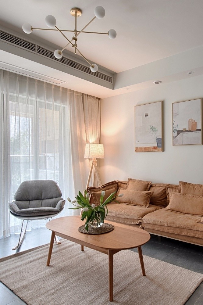 朋友聚会、回家疲惫时需要一个超舒适的沙发,暖橘灰的沙发、无论从坐感还是颜值都是业主们喜爱的;