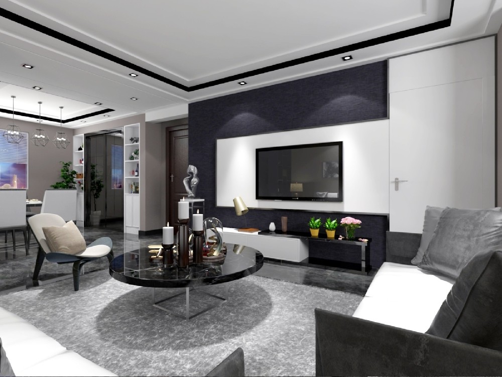 户型为三室两厅一厨两卫,黑白灰色的搭配,能给室内空间引入更多的新意,简约风格的特色是将设计的元素、色彩、照明、原材料简化到最少的程度,但对色彩、材料的质感要求很高。因此,简约的空间设计通常非常含蓄,往往能达到以少胜多、以简胜繁的效果。