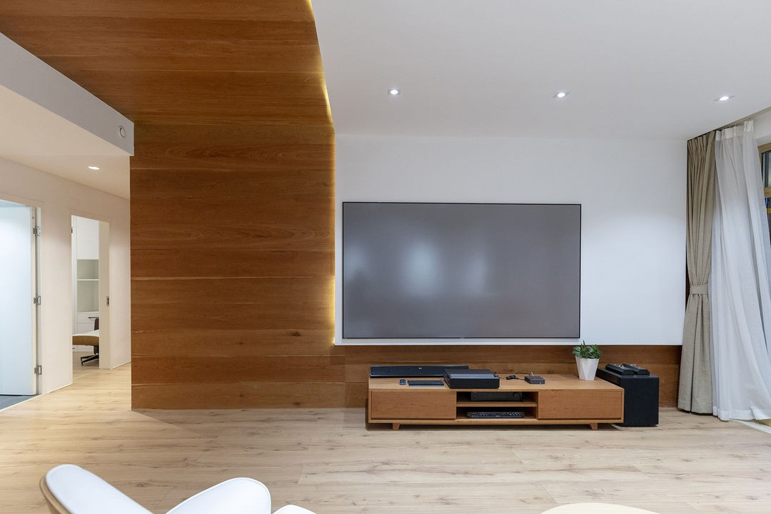 顶面采用墙板和白色乳胶漆拼接方式拉伸空间层次,质感十足。