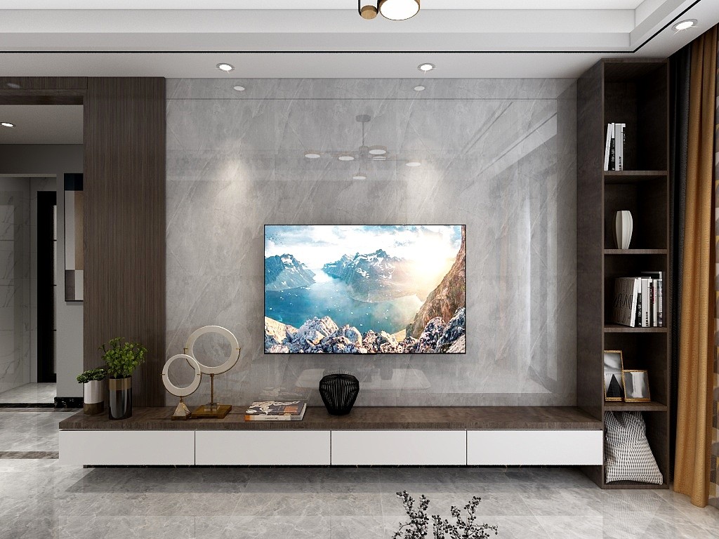 灰色的大理石背景墙立体感,增强了空间的观赏性。