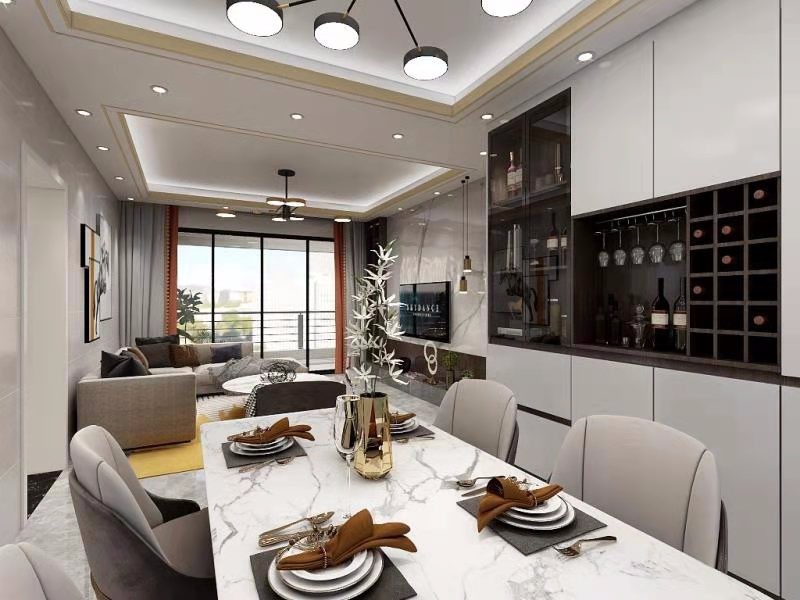 大理石天然形成,拥有自然的纹理和淡雅清新的色调,为餐厅带来满满的自然气息,打破家居空间的沉闷感。