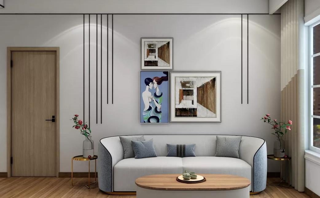 客餐厅书房为一体设计,运用墙体做大面积定制柜,结合客厅简约线条一起。