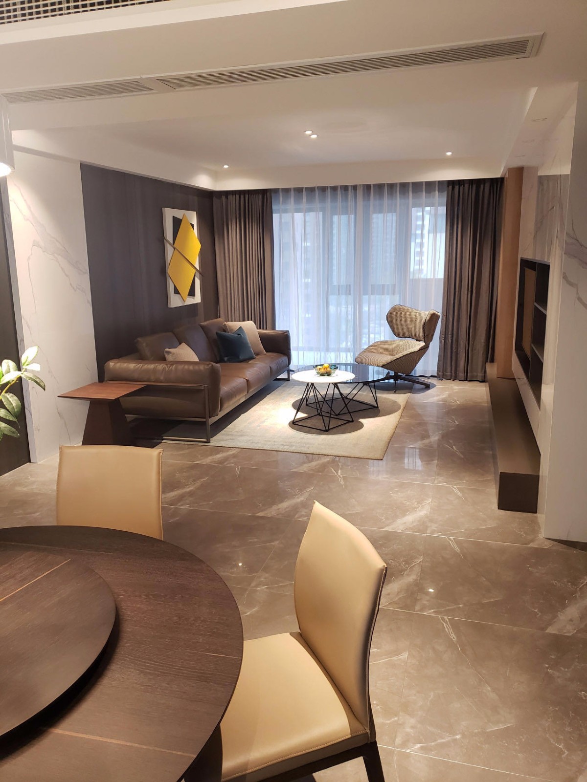 客餐厅背景用木饰面加大板砖