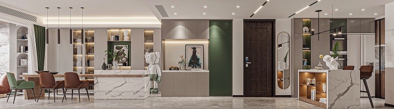 客厅取消传统沙发,做大型休闲桌增加家人的违和感