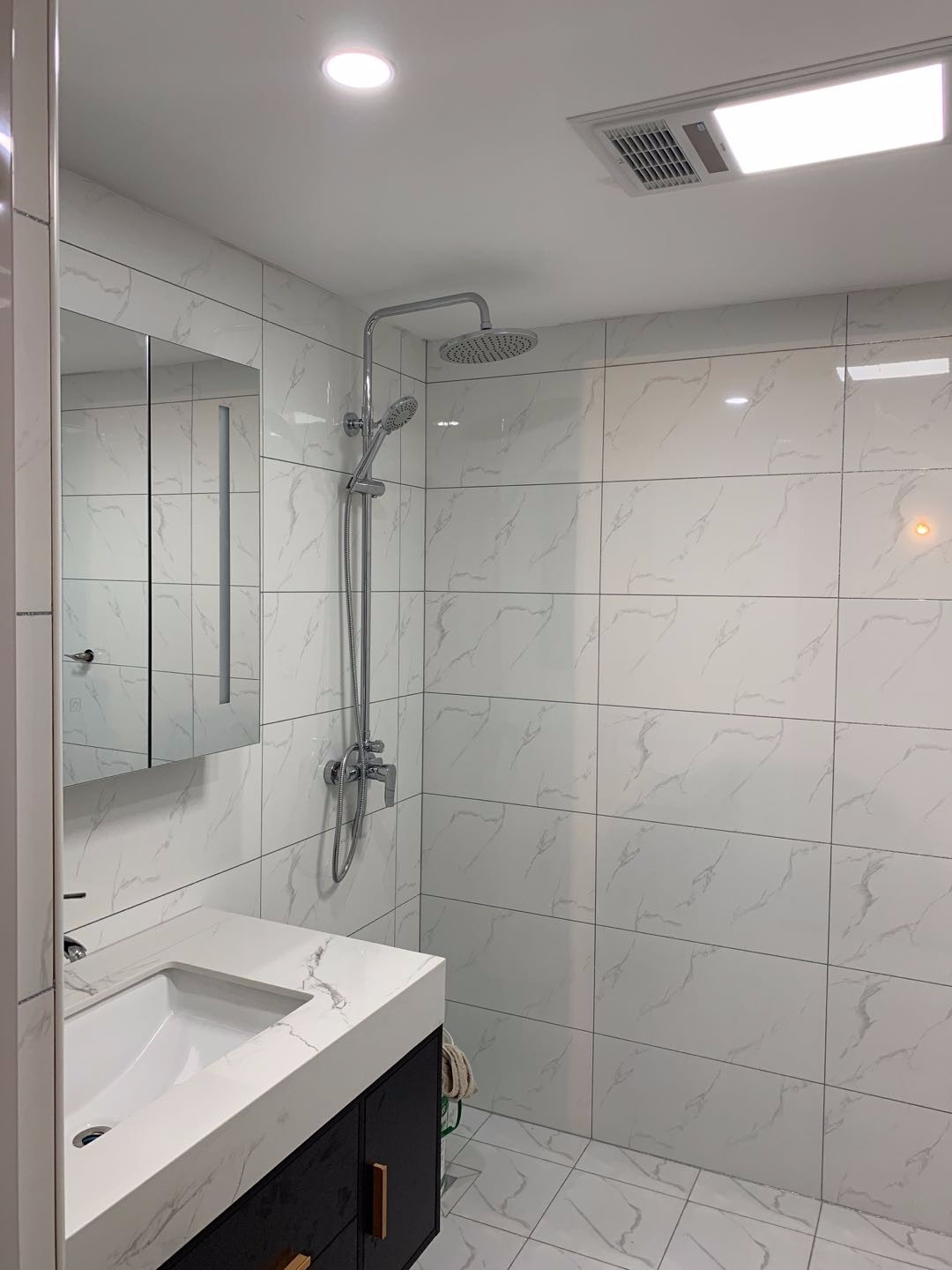 简洁大方的卫生间,整体白色水墨纹效果,更显***
