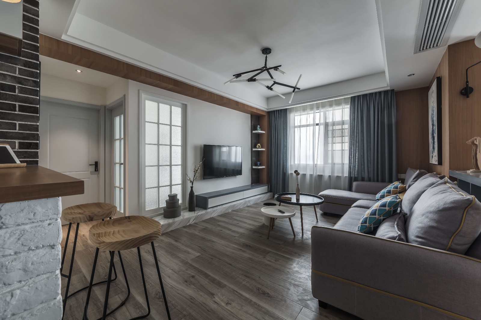 背景墙能够透过一缕光,空间更加灵动