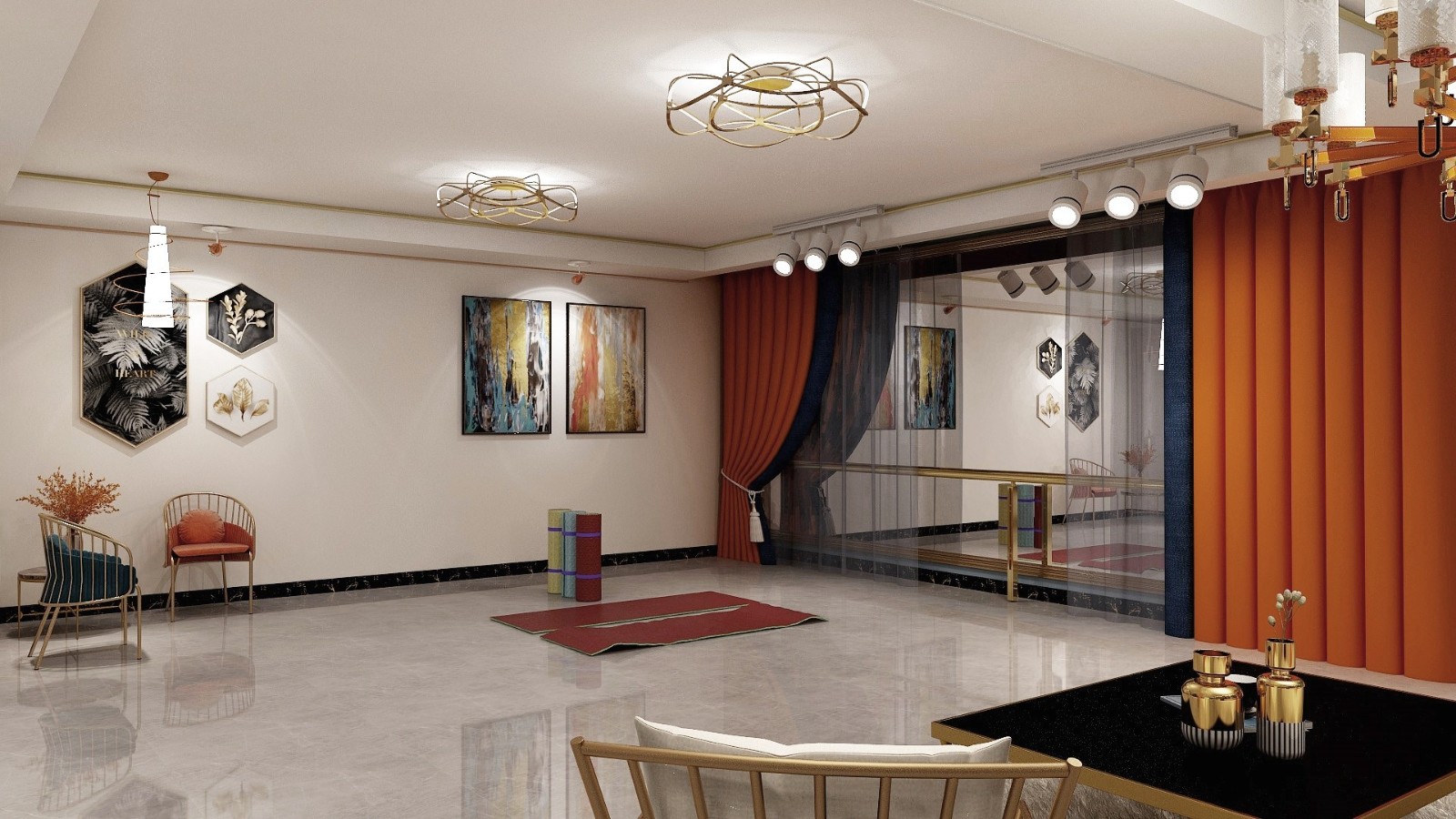 舞蹈室,瑜伽室。也可以在这里举办part,使用的时候把窗帘拉开,不使用的时候可以关上窗帘