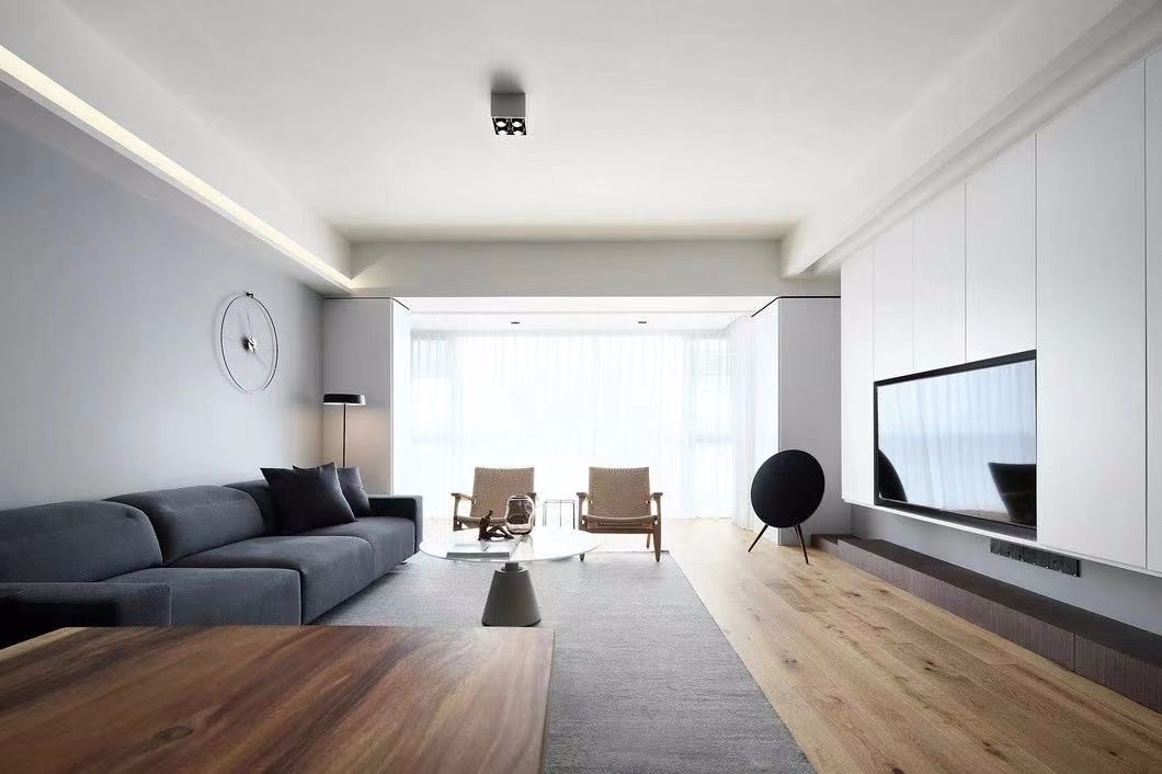 客厅的落地窗承接了阳光的洗礼,以“白灰木”的全屋搭色,让客厅空间看起来宽敞明亮之余,更添宁静雅致的休憩氛围,结束***的繁忙工作后回到家里,情绪也随之被安抚舒展。