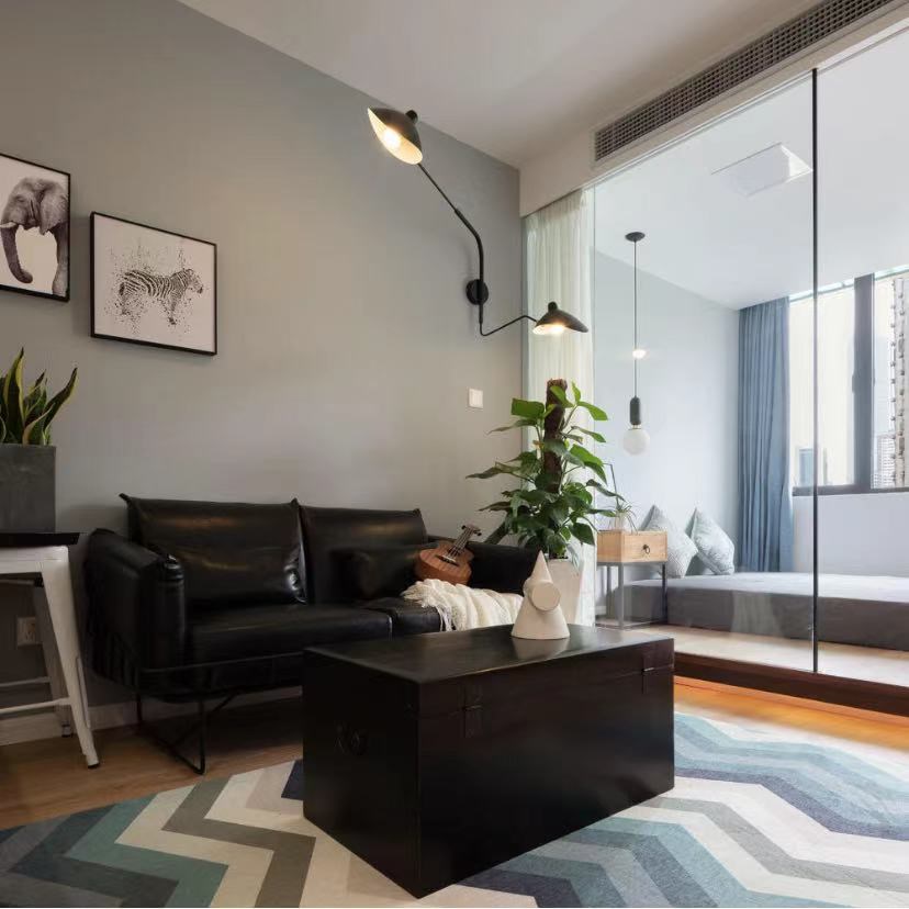 改户型为地铁口的公寓小户型,更多考虑空间利用和开阔感,室内只有40平