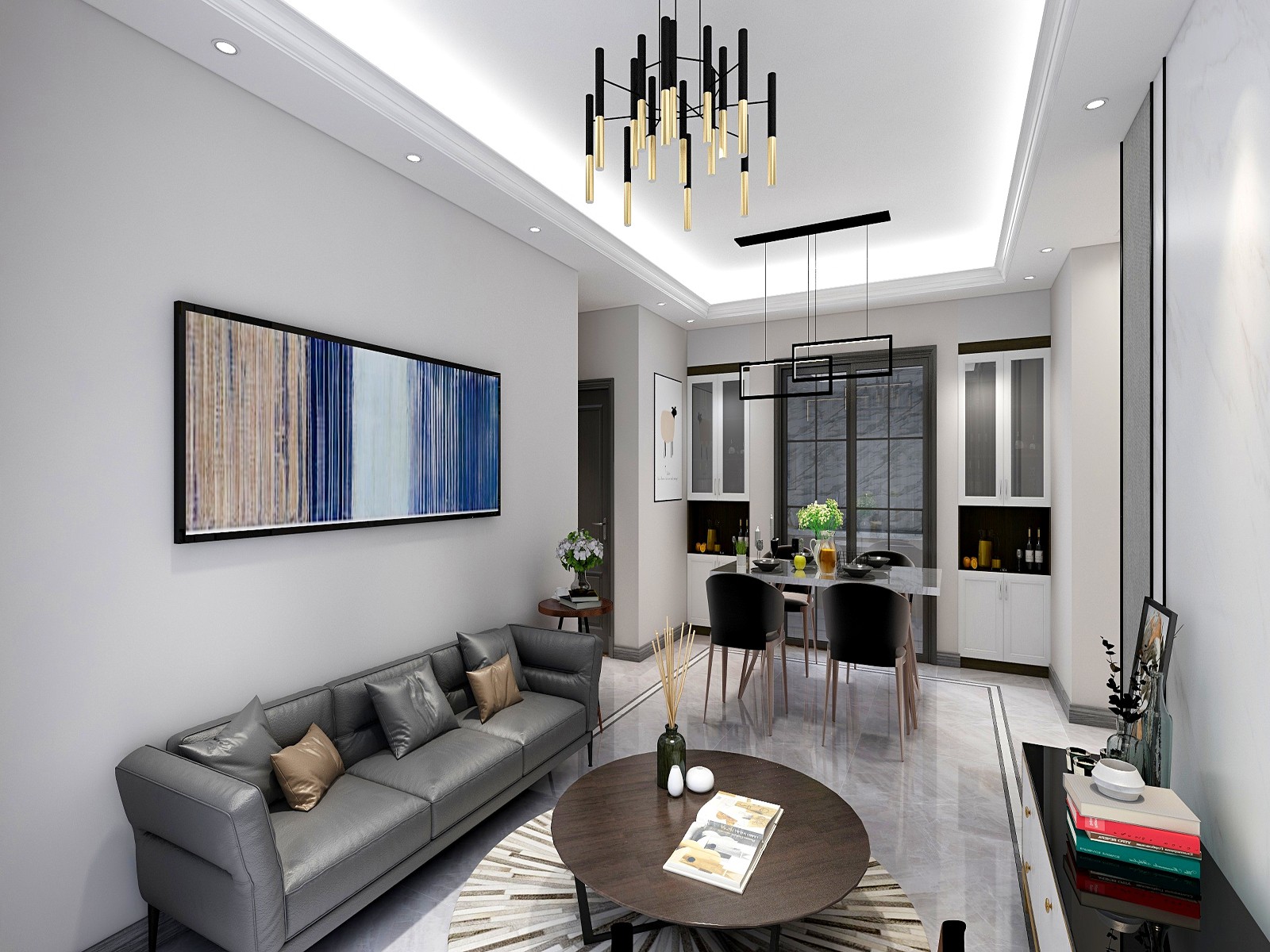 客厅作为活动的公共区域,减少小件家具的数量,保持了一个简洁的空间环境。客厅的色彩简单,用中性的灰色营造***的质感。
