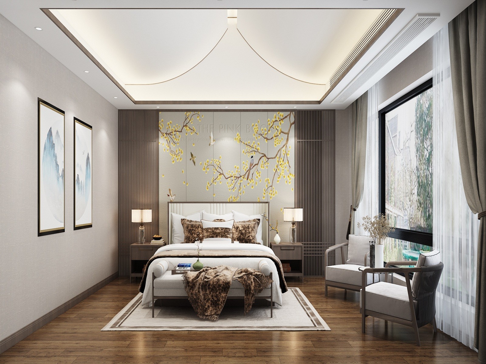 借助曲美的线条,勾勒祥和,静谧的空间,不同材质的应用,空间显得格外的优雅
