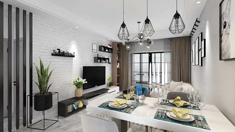 客厅为黑白灰加工业风设计,整体时尚感很足,大气简洁