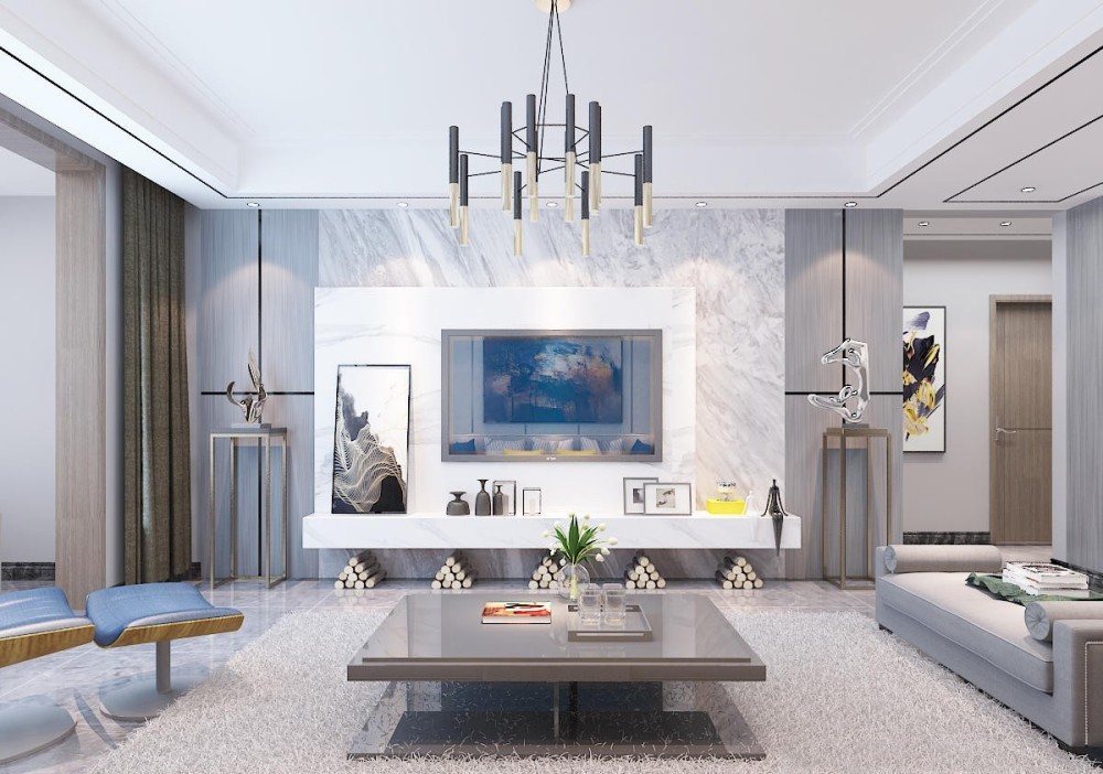 本案例在选材上不再局限于石材、木材、面砖等天然材料,而是将选择范围扩大到金属、涂料、玻璃、塑料以及合成材料,并且夸张材料之间的结构关系,甚至将空调管道、结构构件都暴露出来,力求表现出一种完全区别于传统风格的高度技术的室内空间气氛。在材料之间的关系交接上,现代设计需要通过特殊的处理手法以及精细的施工工艺来达到要求。其次,现代风格的色彩设计受现代绘画流派思潮影响很大。通过强调原色之间的对比协调来追求一