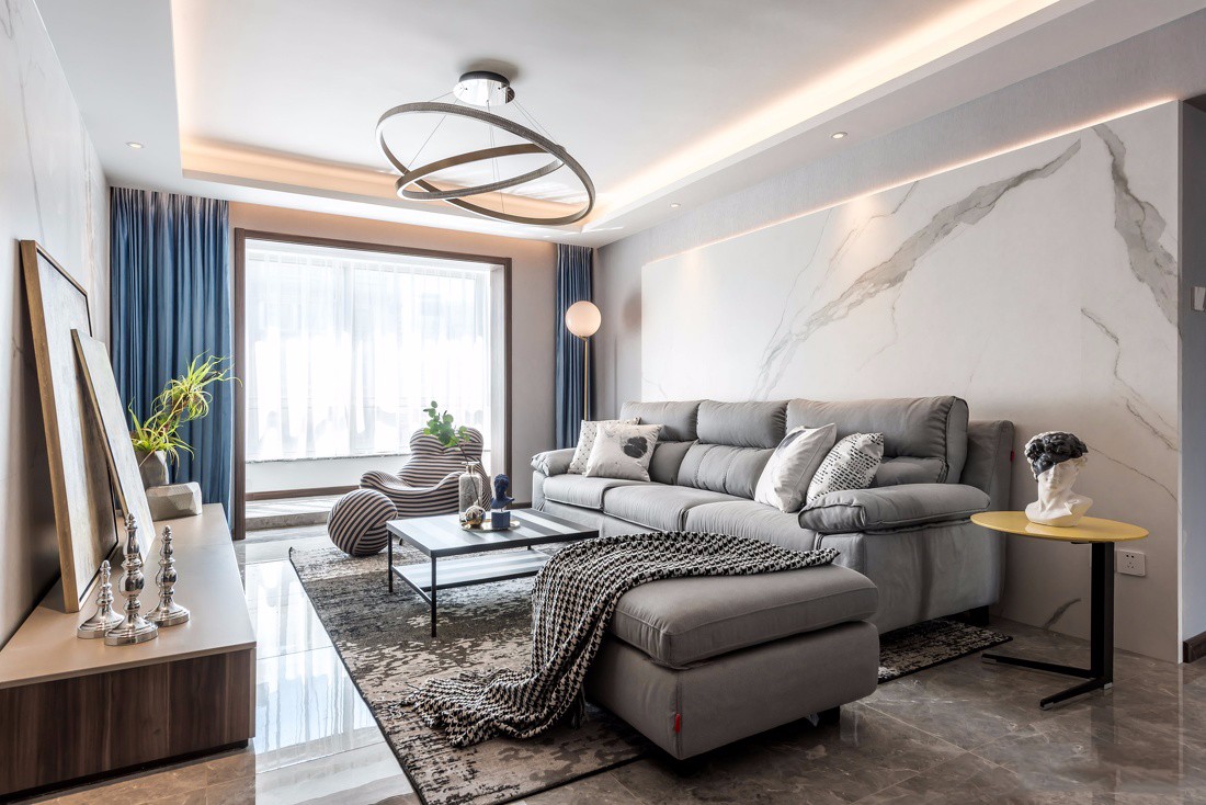 客厅(墙壁的装修在做到极简的同时又融入了东方传统的设计元素与现代空间居住的元素融合后使美观与舒适并存。款式虽旧但质地柔软的沙发可以给用户舒适的包裹感和安全感,在沙发旁放置一张异型的沙发和对比色鲜明的抱枕可以很好的打破这个格局,将家中温暖的氛围烘托出来。)