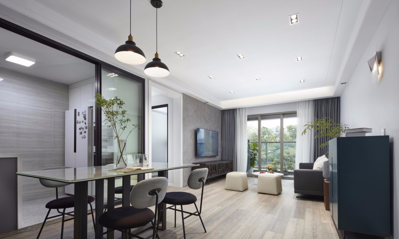 (客餐厅)客餐厅区域开放式设计,看似互不相关,实则彼此关联,***限度舒展空间,无主灯的设计,整个空间看起来简约干练。