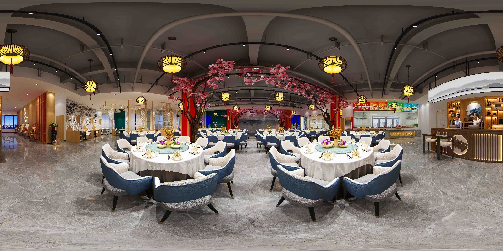 大厅(空间主运用红和蓝色作为主色调来衬托楚菜的香鲜微辣的特色,每一个角落都散发着浓浓的湘菜特色。毕竟吃饭是整天忙忙碌碌的人们难得的休息时光,希望在这里享受美味的同时,也能在优雅舒适的环境中彻底放松身心。)