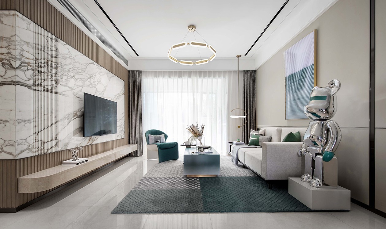 客厅整体空间以简约灰为主体,没有繁杂的装饰,只有简单灵动的线条,简洁而明亮,一笔一线,勾勒出随性而自由的模样。