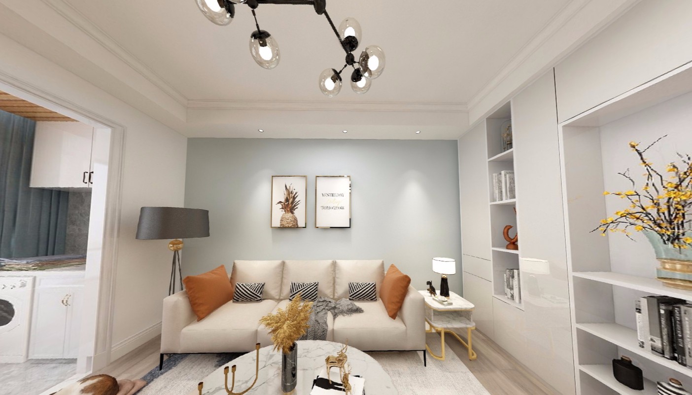 舒适的原木色搭配温柔的蓝色系,让整个卧室温馨自然