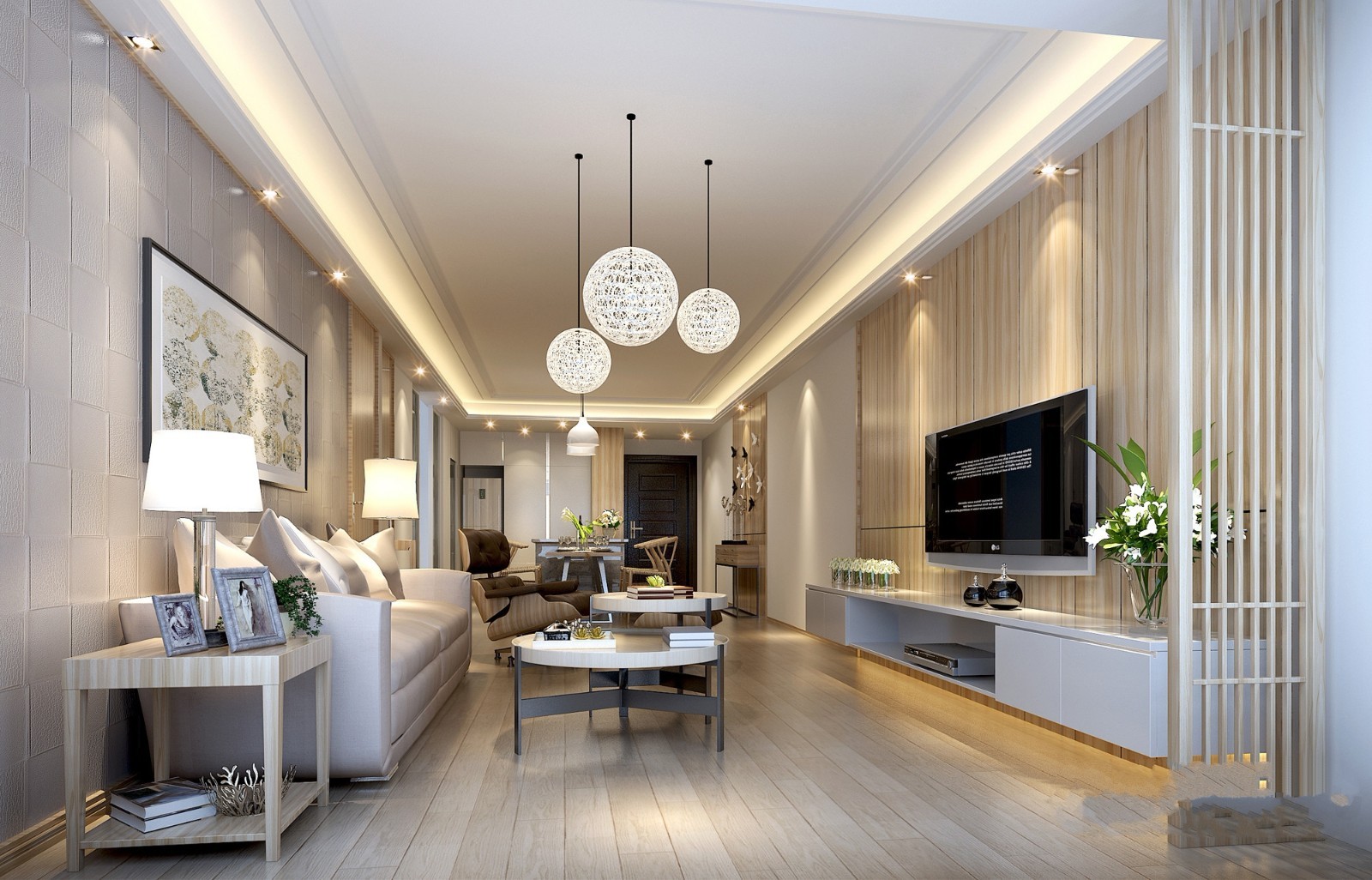 客厅做了一个现代混搭风格,整体以暖色为主. 入户大门正对阳台,做了一个偏中式玄关后隔断. 沙发做了一个有立体效果的墙纸,电视背景做了一个类似木纹的饰面墙布 跟整体形成一个呼应