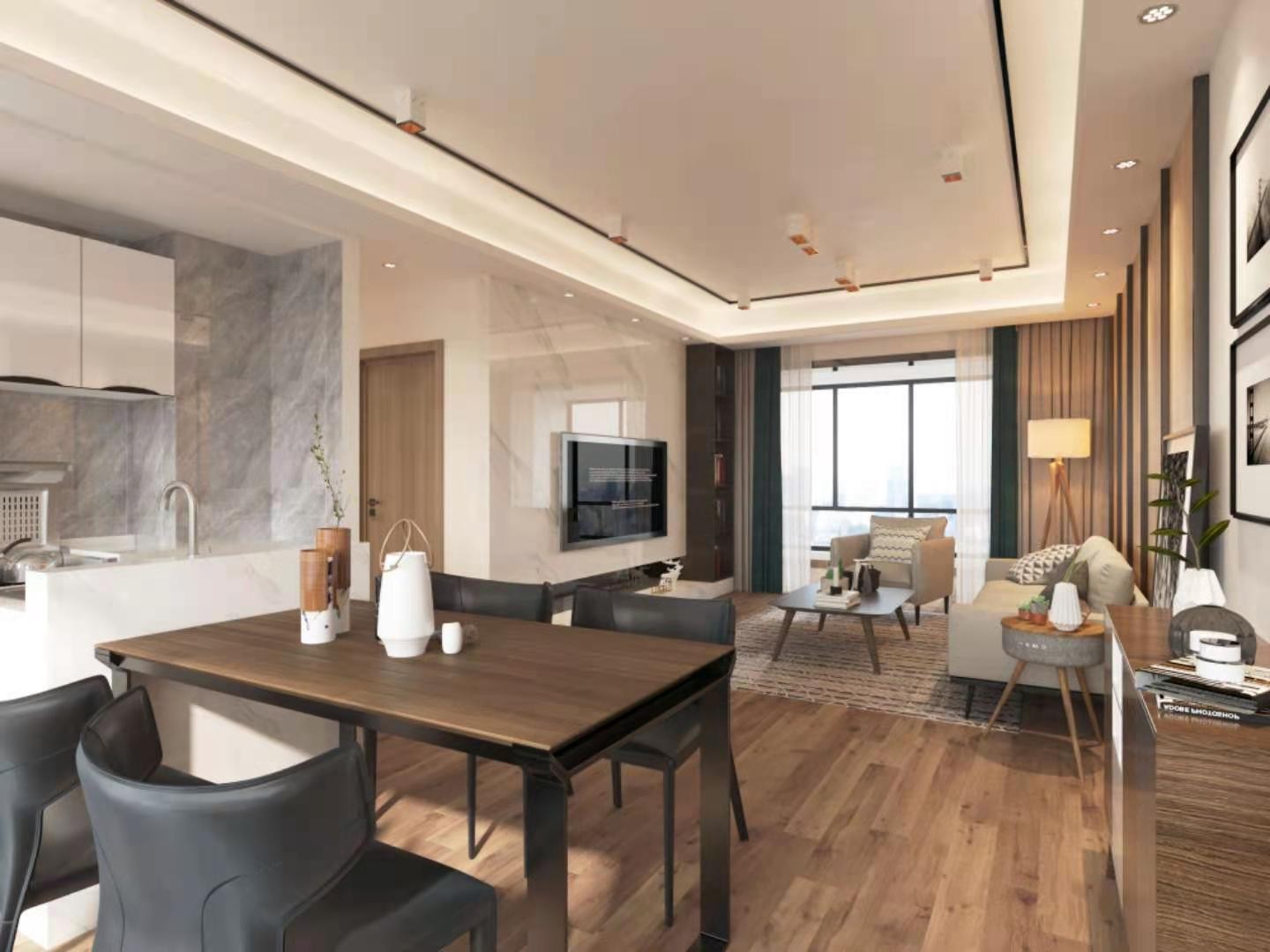 户型有一个很大的赠送空间,可扩大客卧的空间,餐厅较为拥挤做了开放式发式厨房。