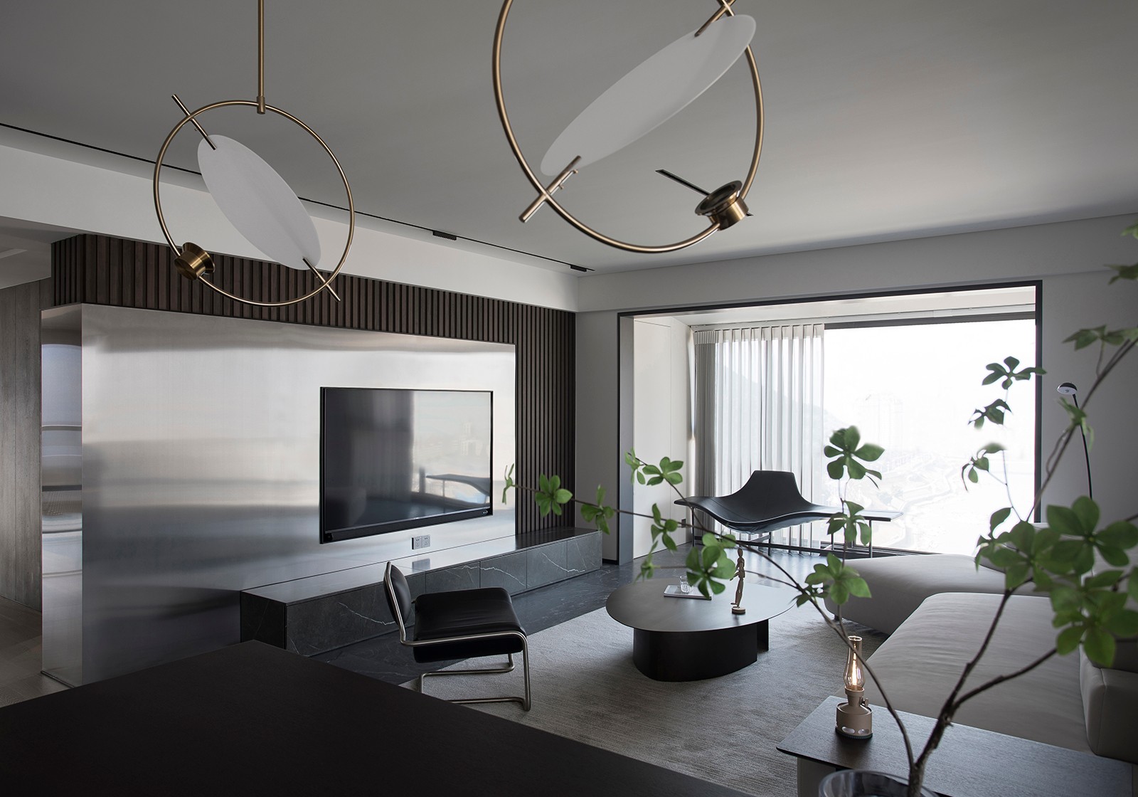 通透的自然光,给了暗系***的采光选择,柔软的地毯与沙发,表面微微反光,将因通透成就的光合效应倍速放大,温情与温暖,打破定律,于冷调里自然生发。
