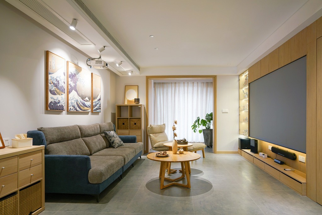 客厅的布置以舒适实用为原则,舒适的沙发,超大的屏幕,游戏主机与投影,让家里的时光充满各种乐趣。这样一个客厅,收纳性也有充分的考虑。