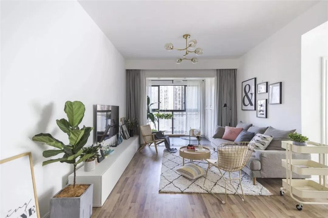 今天要分享的是一套96平北欧风小三居,设计师打通客厅阳台、开放厨房和生活阳台,使客厅餐厅厨房成为连通的流畅整体,充满了明朗与舒适感。