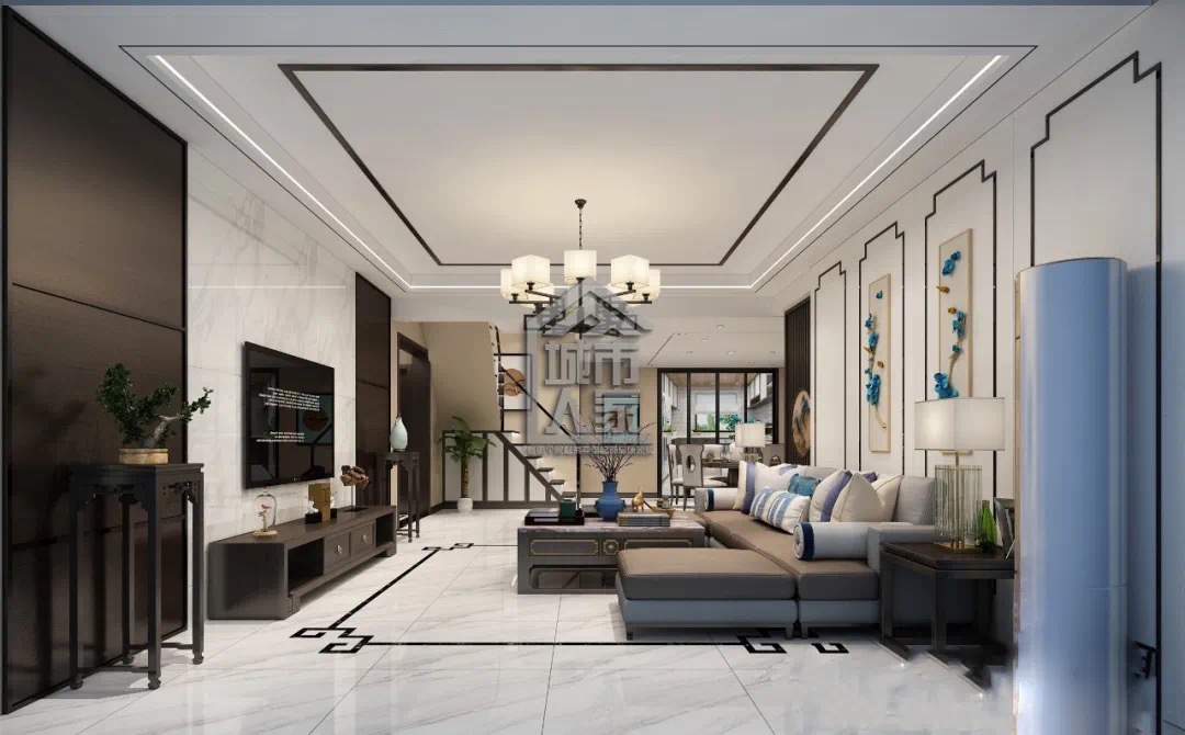 新中式的构成主要体现于传统家具 装饰品以及黑红搭配,室内多采用对称式布局,格调高雅,造型朴素优美,色彩浓重而成熟。