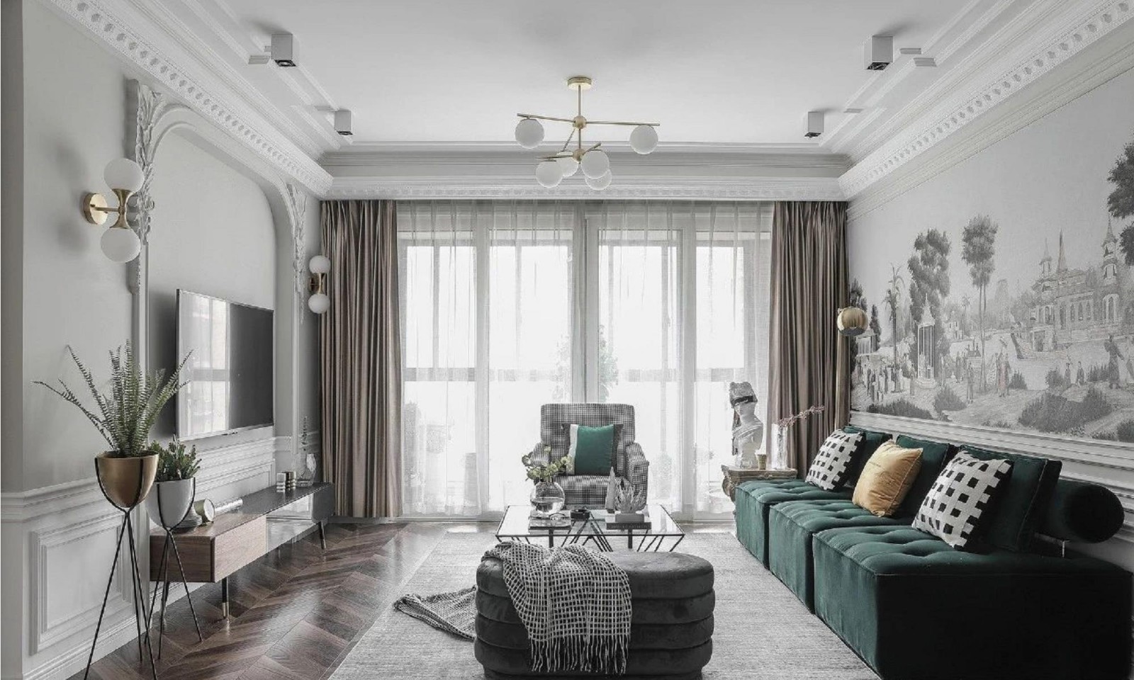 这是一套面积为121平米现代古典风格三居,是设计师给在老家的爷爷奶奶和爸爸妈妈设计的房子,希望可没以给他们中晚年生活创造一个安详的体验空间。