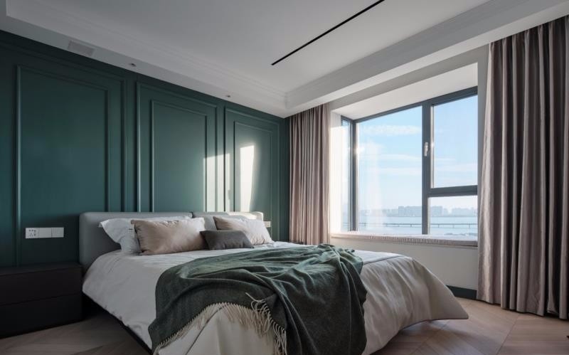 设计师采用大胆的绿色元素,使整个卧室更具档次