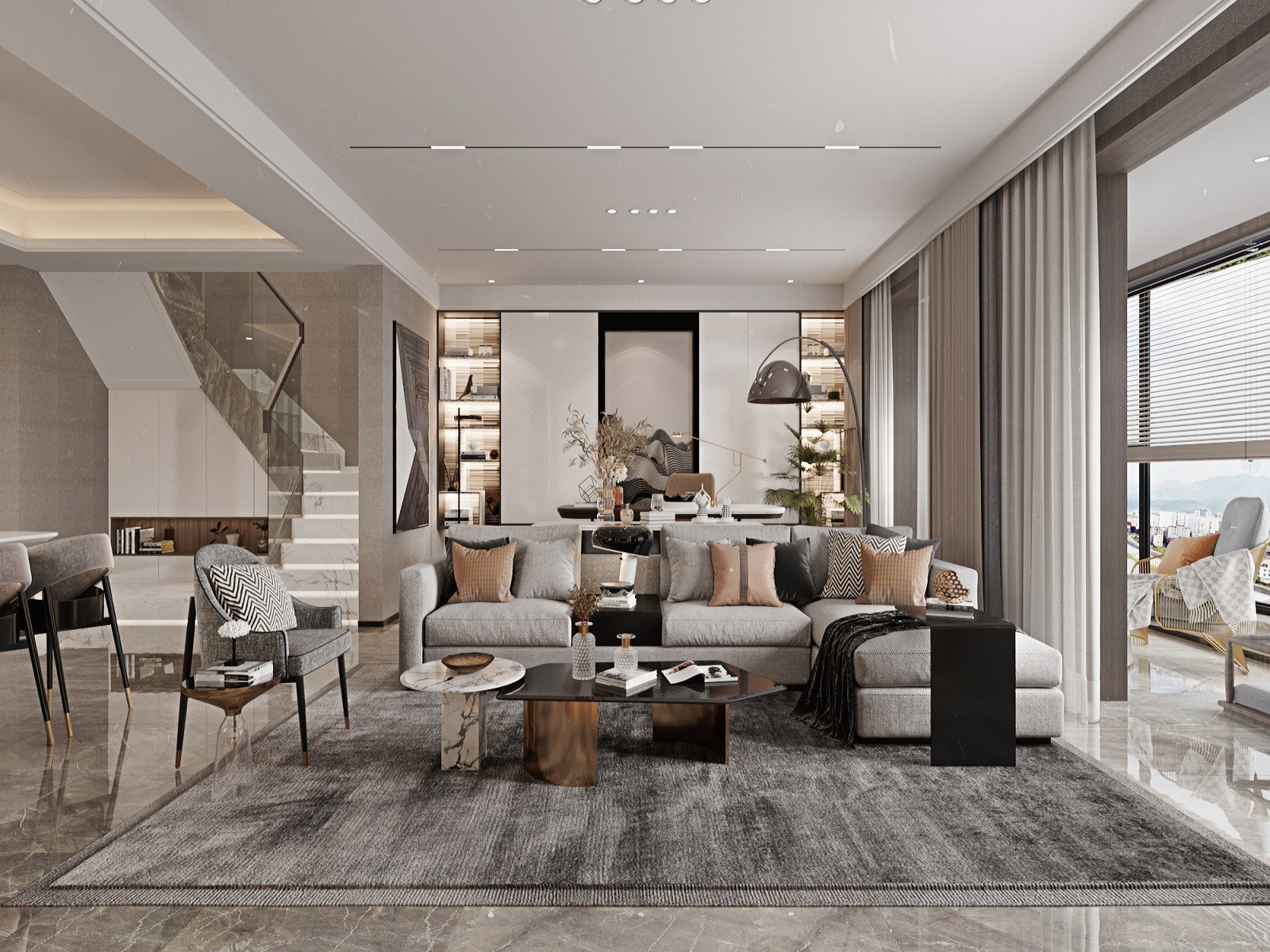 客厅的设计简约大气、线条洗练,淡色系墙面、天花板、沙发与深色系的茶几、沙发后背墙纸相得益彰,赋予空间平衡之美 ;摒弃一切烦琐和奢华,去掉零碎的空间划分,去掉堆砌的颜色和摆设,去掉繁复设计的家具,但整个空间看起来,却又简而不凡。开阔大方的家居格调,给人带来清爽明快的视觉感受,久看而不腻。和谐的色素营造出温馨恬静的舒适环境,和谐的气息下,体味属于自己的静谧时光。