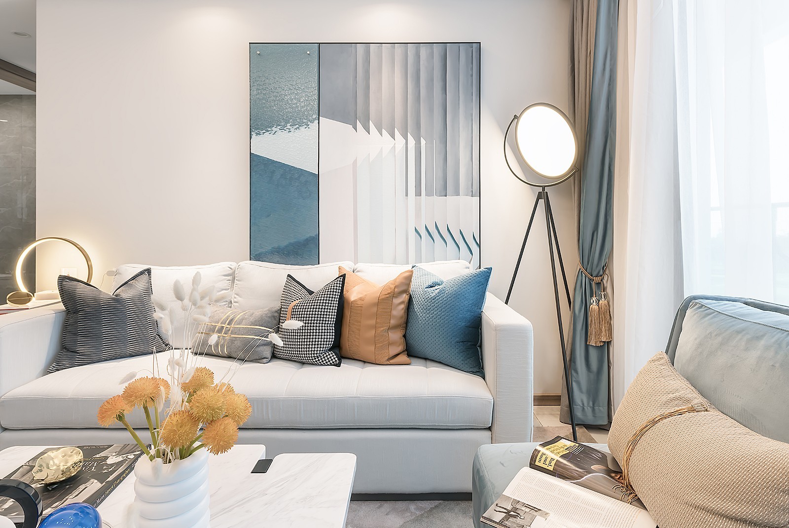 设计师收集了来自不同维度、不同时间点的点、线、元素饰品。让视线能在平静的基调中四处游走。使空间具有艺术感和开阔性。
